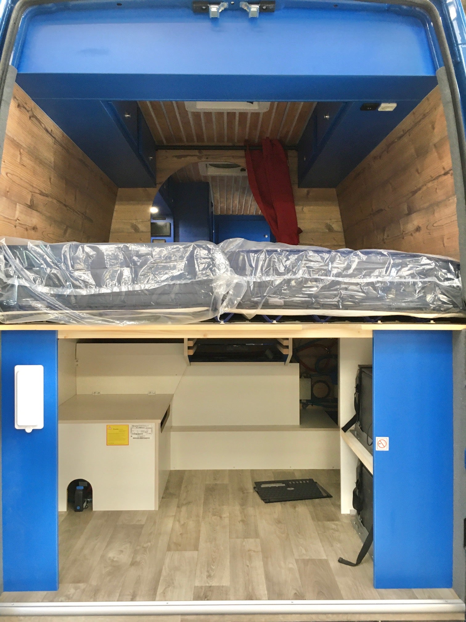 Renault Master L2H3, 2 places, 1 couchette double extensible, grande soute sous faux plancher, grand cabinet de toilette arrière, frigo à compression 80L, chauffage gazole, eau chaude, 2 batteries auxiliaires, rideaux occultants du poste de conduite