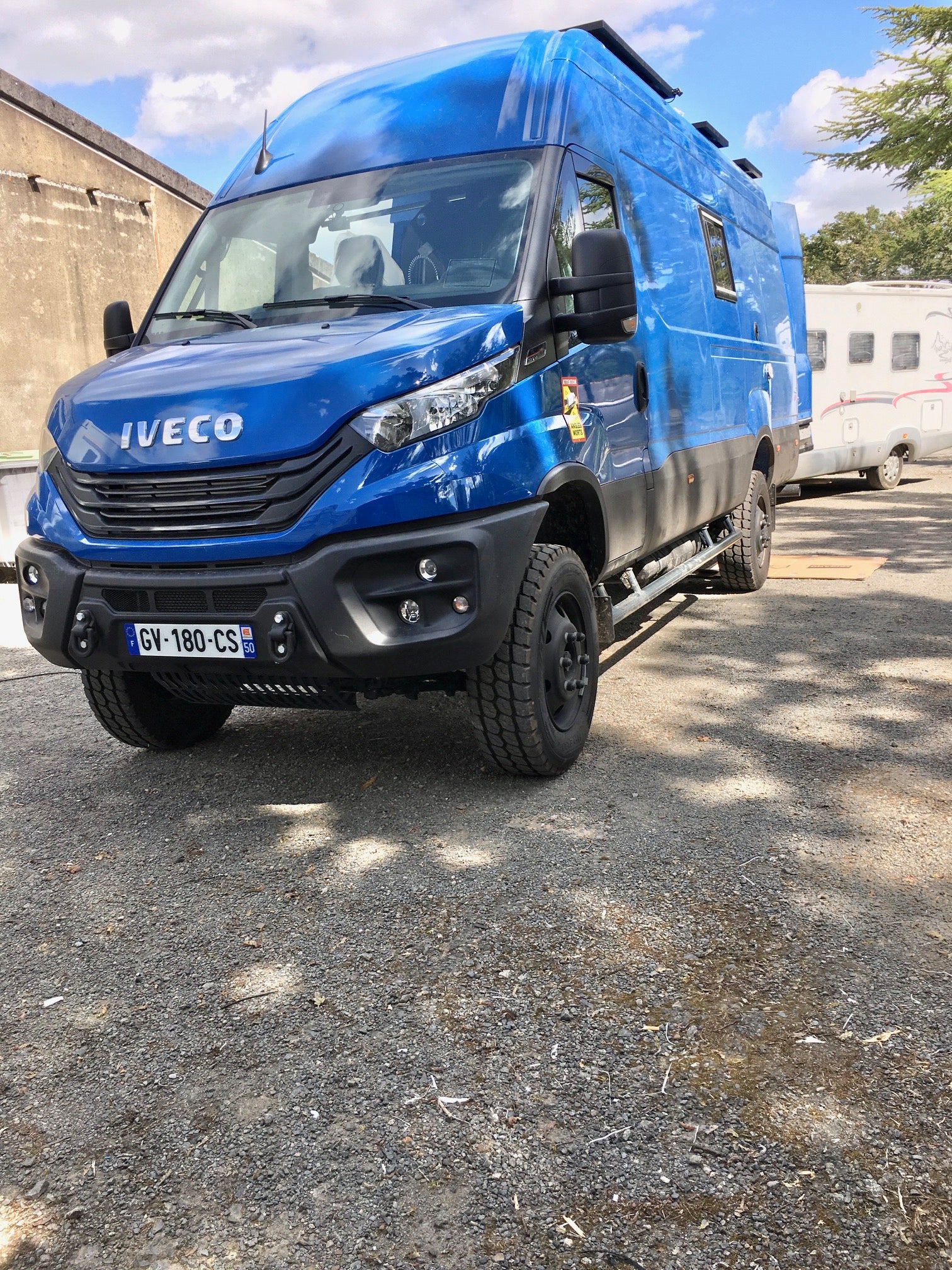 IVECO 4WD 2 places assise, couchage 2 places, kit energie Ecoflow, panneaux solaires, caméra avant et arrière, coin cuisine, évier, mitigeur orientable, robinet pour l'eau filtrée, compartiment WC, toilette sèche, lavabo relevable et douche extérieur avec eau chaude et eau froide