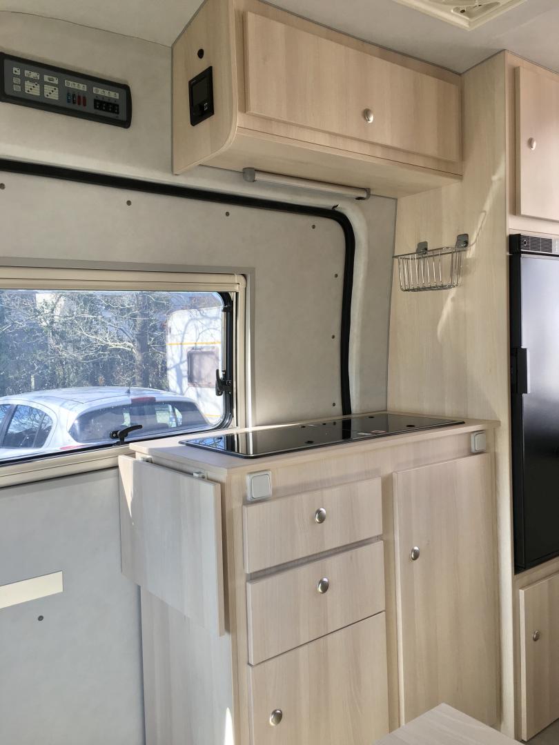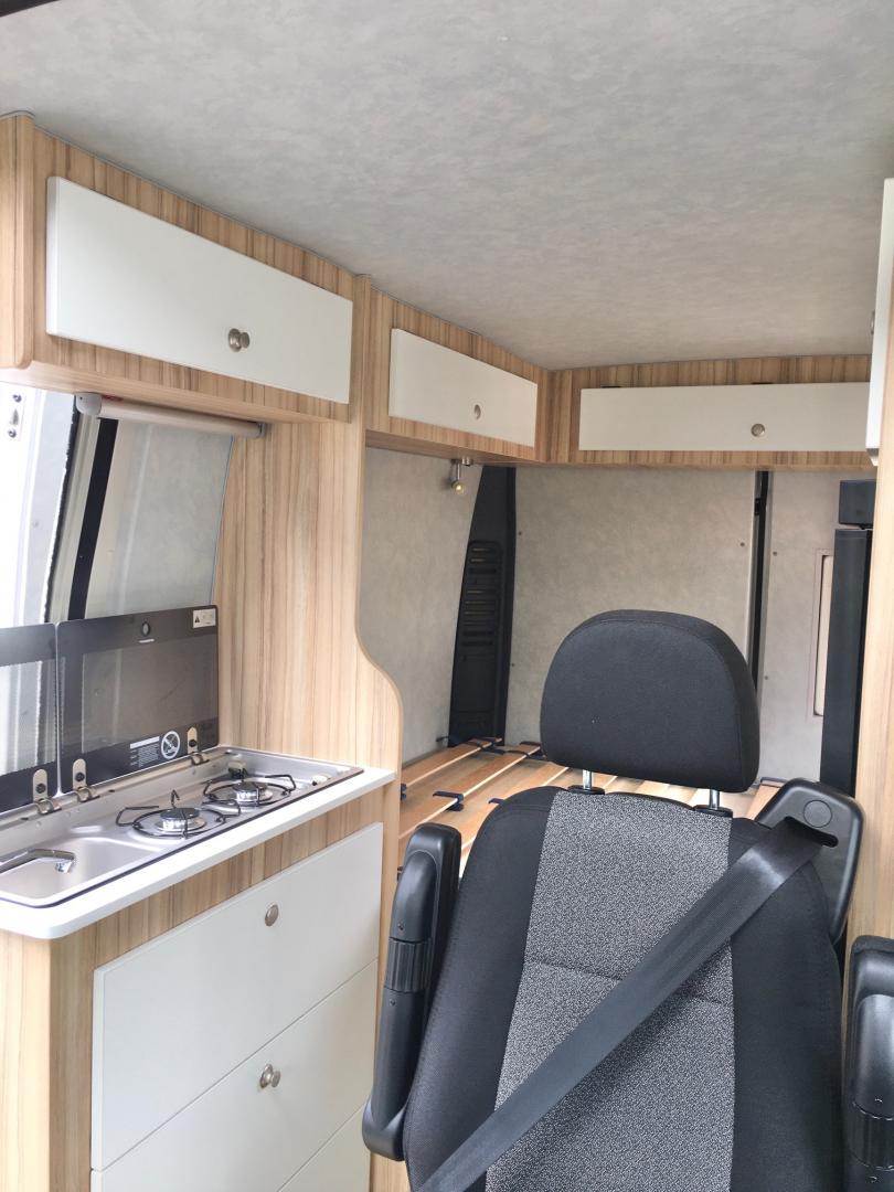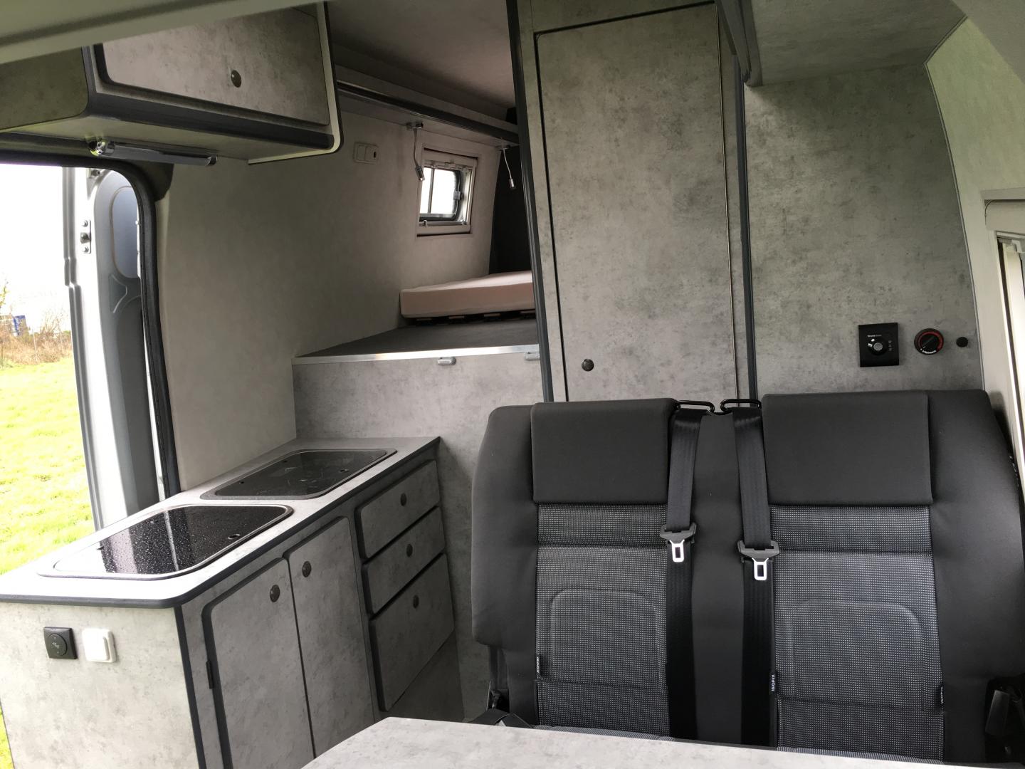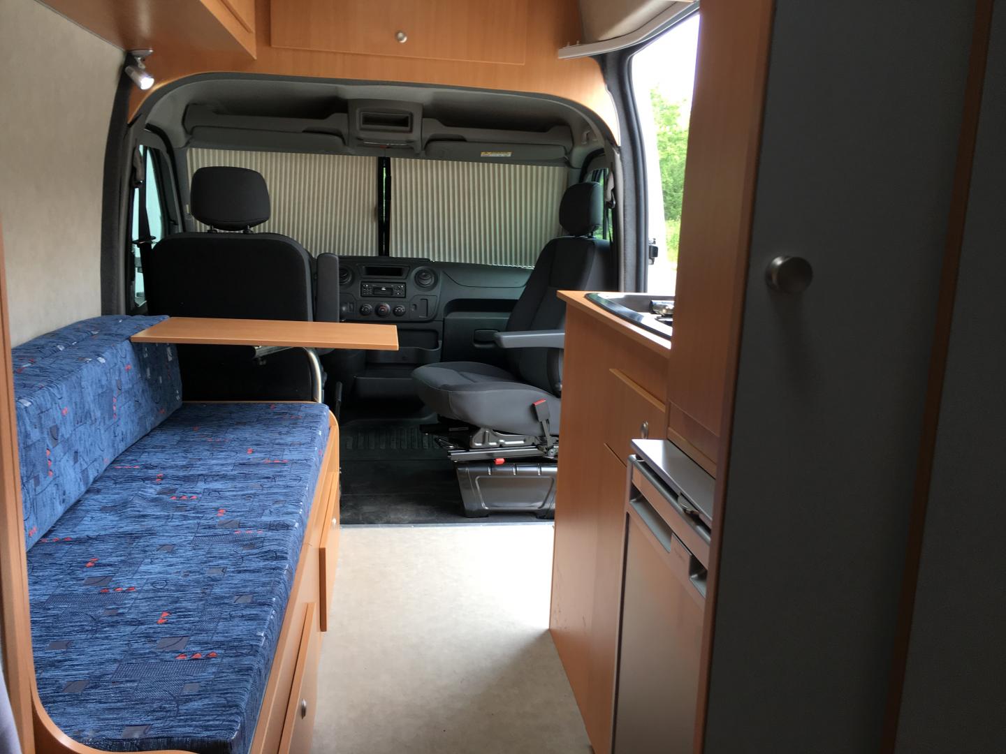 Renault Master L2H2,2 places, 1 couchette double,1 coin cuisine avec réfrigérateur à compression de 80L,1 cabinet de toilette