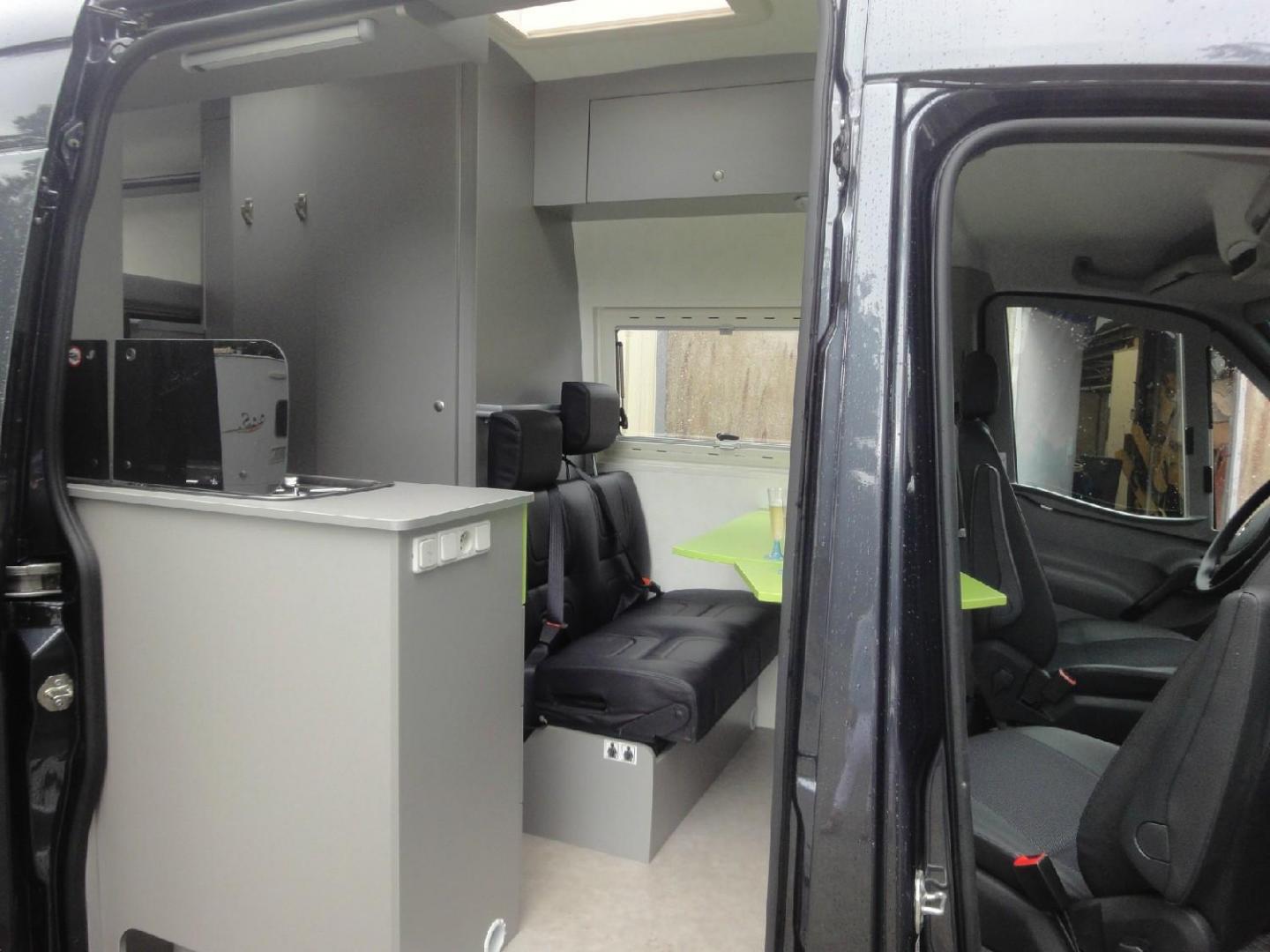 MERCEDES SPRINTER L2H2,2 places assises, 1 couchage modulable salon et coin repas, cabinet de toilette, chauffage gazole,chauffe-eau, soute, cuisine