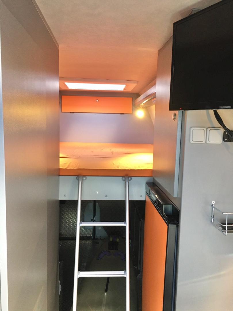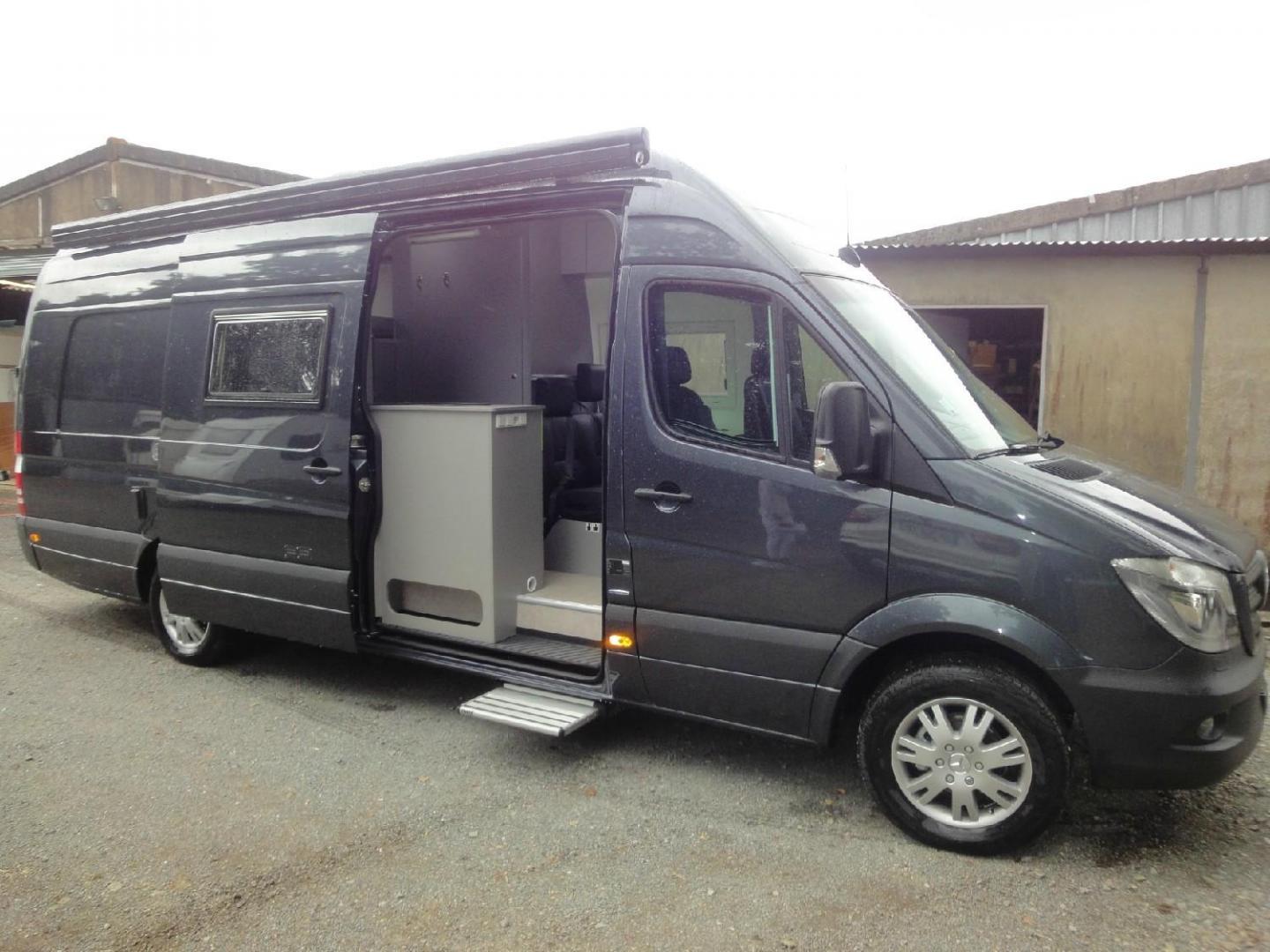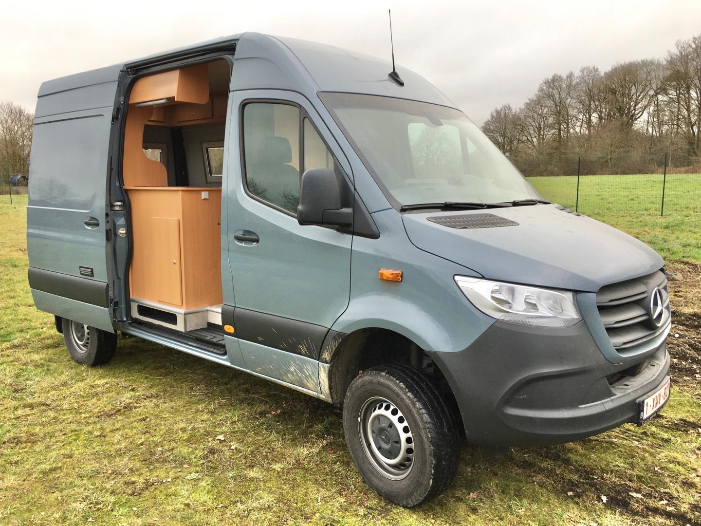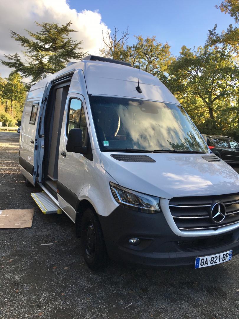 MERCEDES SPRINTER, 4 places assises, un lit permanent ,soute moto, chaudière gaz, store extérieur, réserve eau propre 100L, réserve eaux usées 70L, réfrigérateur absorption