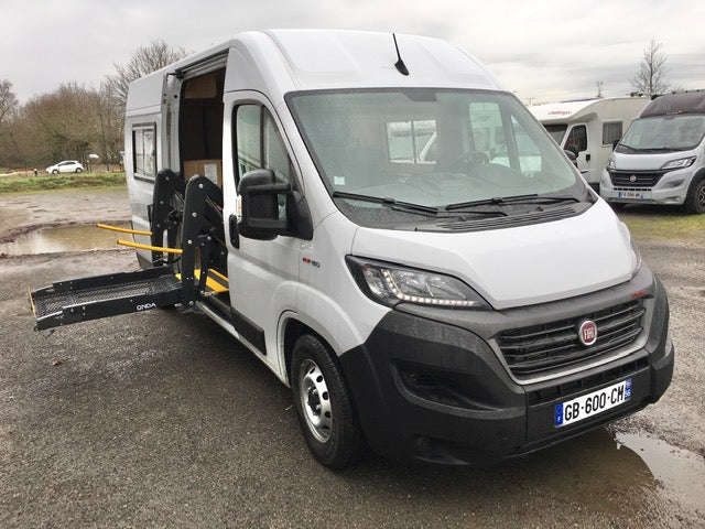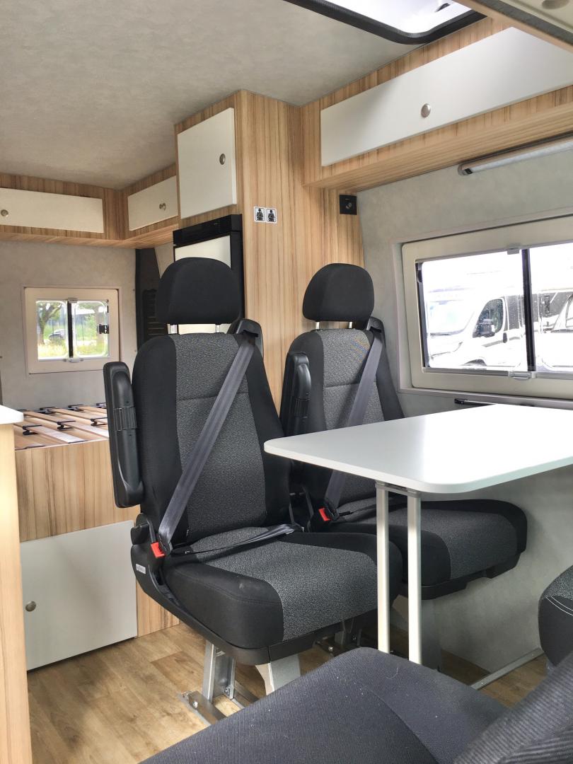 FIAT DUCATO L3H2,2 places+1 place fauteuil, 2 couchages, 1 meuble cuisine avec plan de travail comprenant un combiné inox avec évier et réchaud 2 feux,1 réfrigérateur trimixte de 80L,cabinet de toilette avec WC,chauffe-eau gaz,chauffage gazole,réservoir d'eau propre 100L, réservoir d'eau usée 70L,antenne sat automatique,téléviseur
