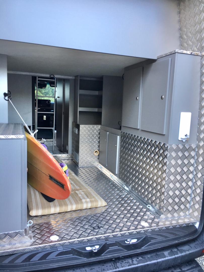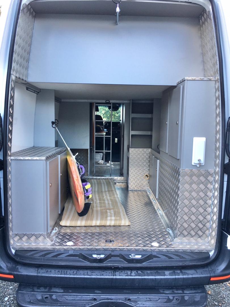 MERCEDES SPRINTER L3H3, 2 places assises, 1 couchage double, cabinet de toilette,avec double accès, grande soute de rangement pour planches à voiles, grande autonomie.